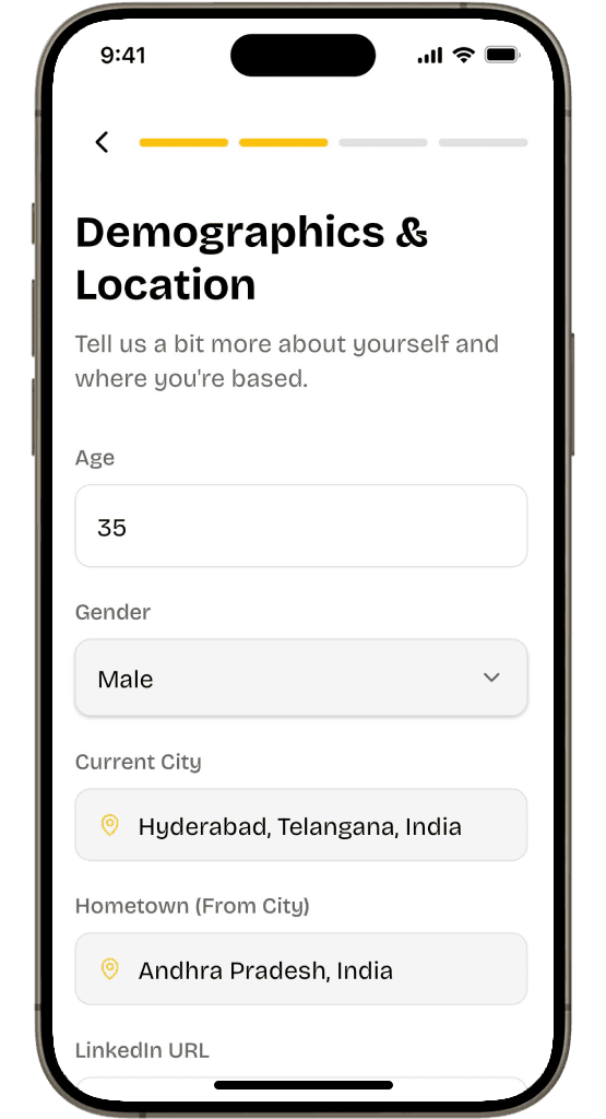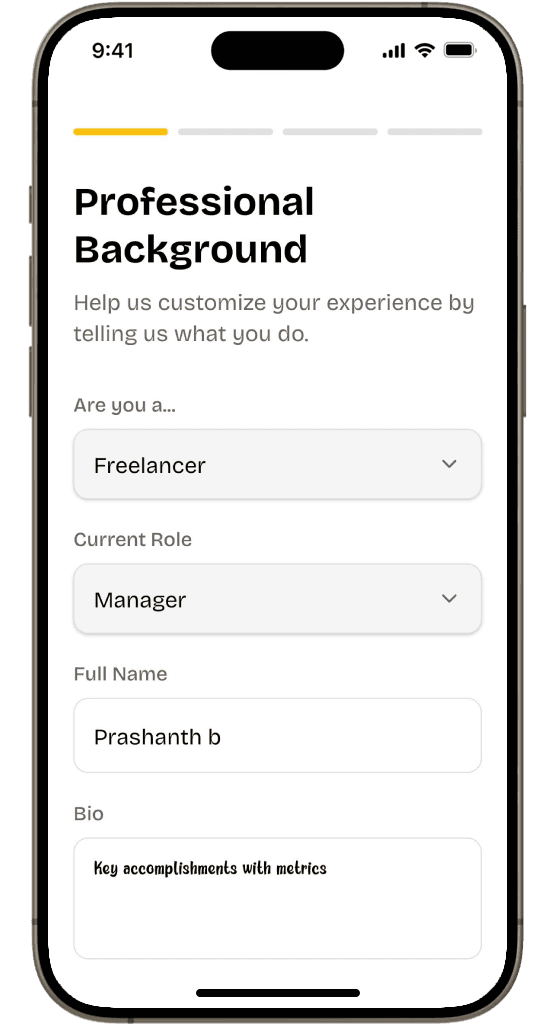 1. Fill out Professional Info